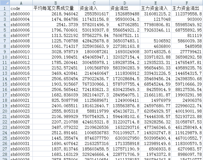 说来很简单,就是这只股票当天所有买盘交易的总成交额。反之,所有卖盘交易的总成交额就是资金流出。 当一笔成交的成交量很大的时候,比如大于500手,成交这样一笔需要比较多的资金,往往认为这笔成交是由机构或者大户完成的,也就是所谓的主力。那么这只股票当天所有成交量大于500手的买盘的总成交额,即为主力资金流入,当天所有成交量大于500手的卖盘的总成交额,即为主力资金流出。(这里的500是随便设定的,也可以设定一个更加合理的数值) 有了这些概念,就可以根据逐笔数据计算资金流数据了。进入这个地址:http://yucezhe.com/product?name=zhubi-data-push ,点击最左边的按钮“数据样本(免费)”,即可下载到2015-05-19这一天所有股票的逐笔数据,注意数据比较大,下载起来可能会比较慢。